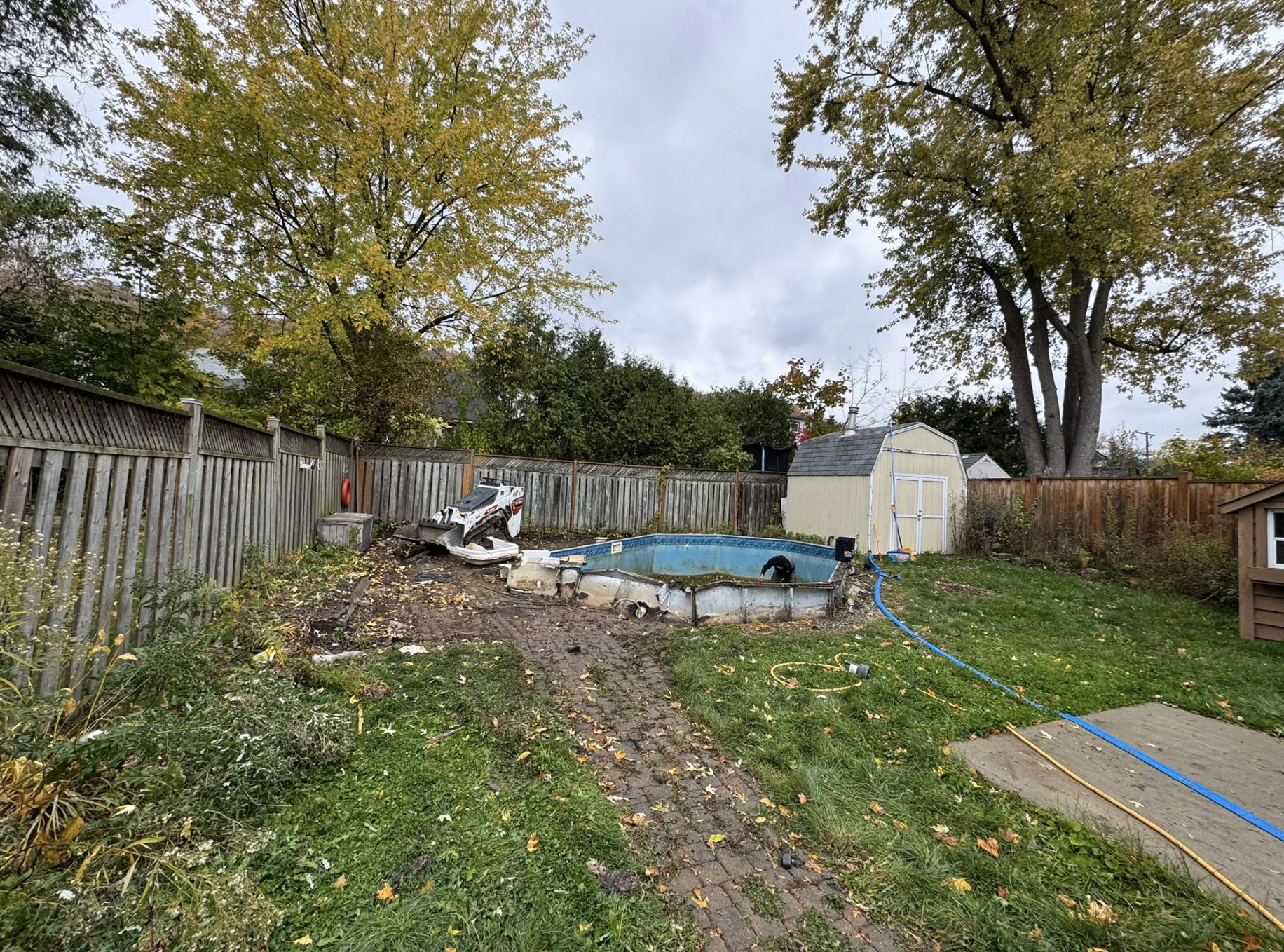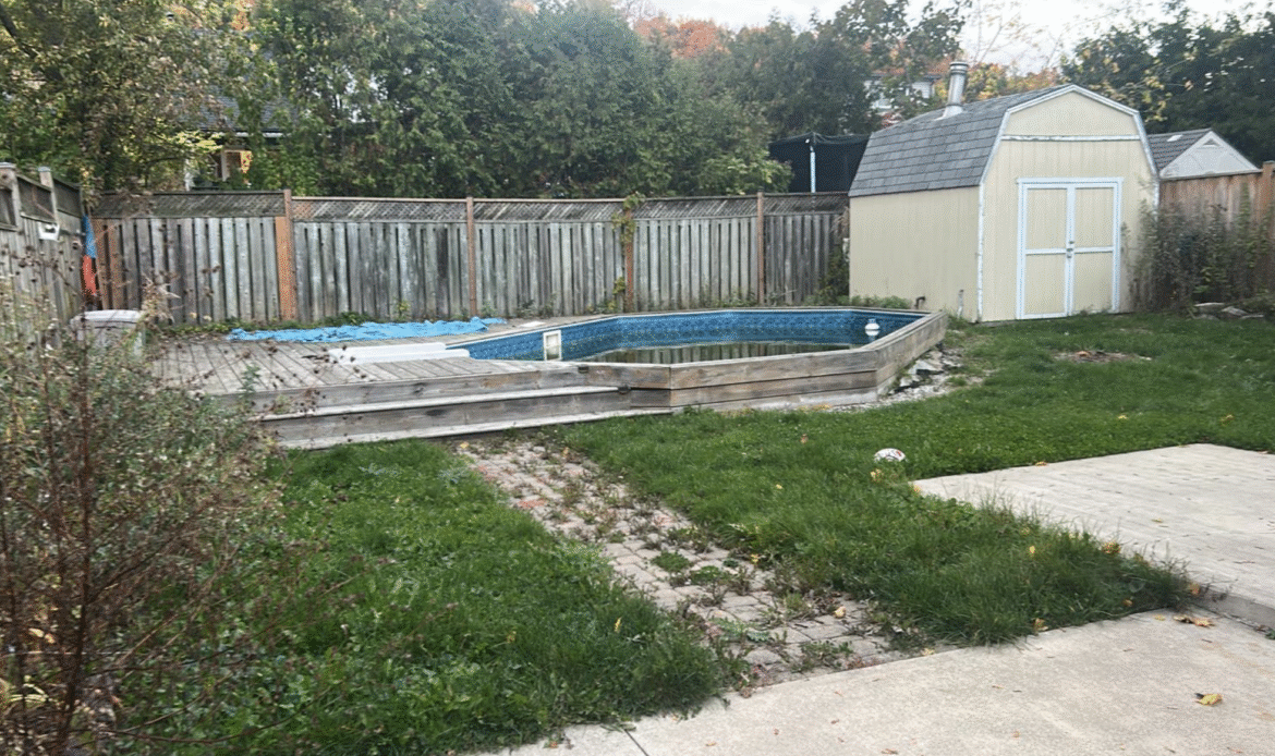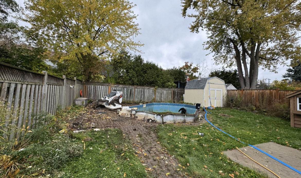 When a homeowner in Hamilton decided it was time to remove their old above-ground pool and reclaim their backyard, Oakly Landscaping was hired to handle the heavy demolition and structural work. Once the pool, deck, and equipment were removed and the area was freshly backfilled and graded, it was The SodFather’s turn to bring the final vision to life with a clean, healthy lawn installation.