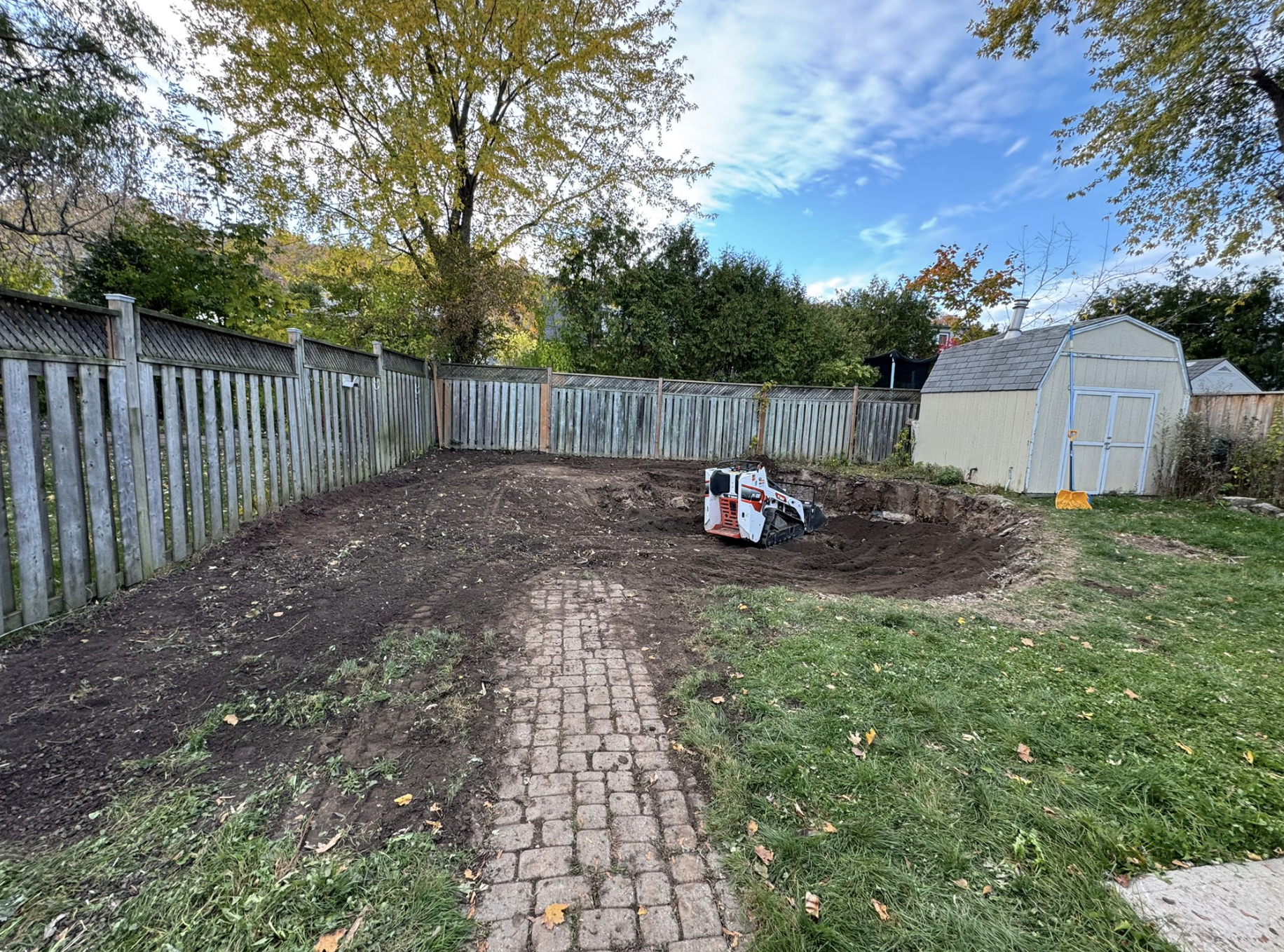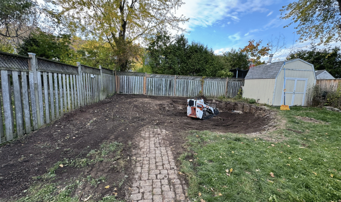 The project began with Oakly Landscaping completing the major preparation work. They handled the full demolition of the above-ground pool, dismantled the surrounding deck, disposed of debris, and reshaped the terrain with new soil and rough grading.